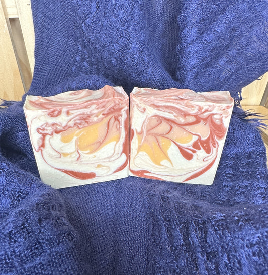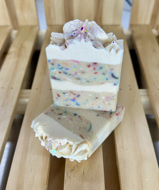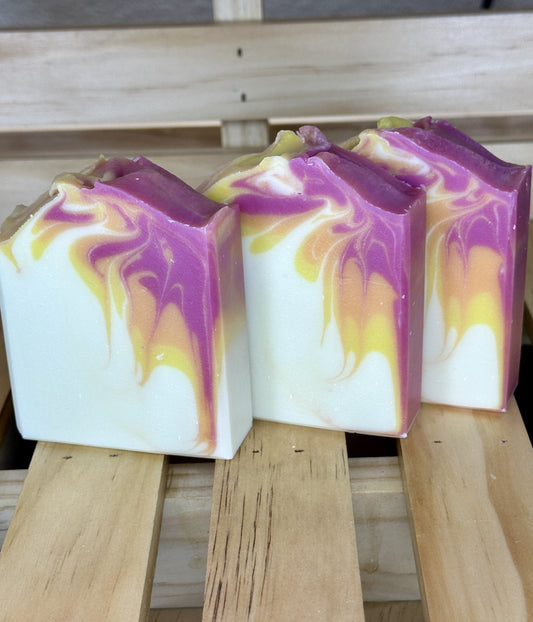 crafted in small batches. Each bar is unique, thanks to the cold process soaping method and artistic pouring techniques.