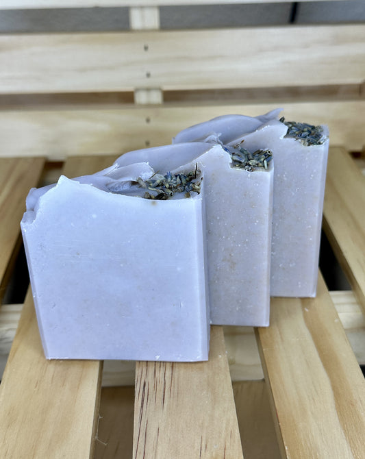 Our soaps feature natural colorants like cosmetic clays. Colloidal oatmeal and whole milk calm sensitive skin, while activated charcoal deeply cleanses. Tallow and lard provide essential vitamins for healthy skin and create a long-lasting bar.